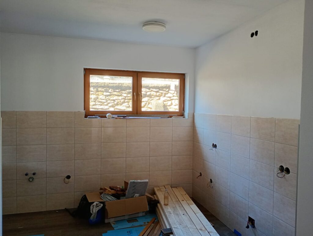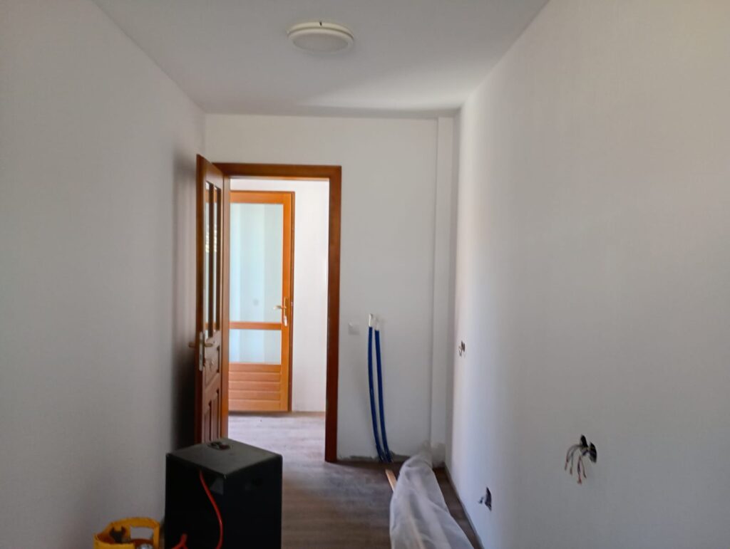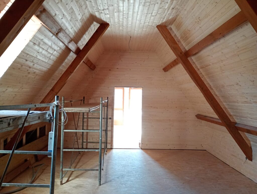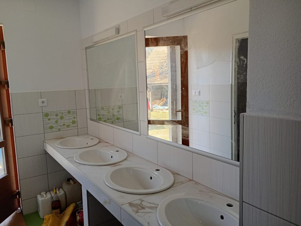 Elkészült a falazás a mellékhelyiségekben, a vécék és a zuhanyzó közé válaszfalat építettek. A konyhában, az előtérben és a mellékhelyiségben elkészült a gipszkarton álmennyezet, a külső faburkolat alá felszerelték a bádogot. A ház így 2024 novemberére átadható állapotba került, a Várfalvi Polgármesteri Hivatallal intéztük a formaságokat. 2025-ben sikerült megönteni a közösségi ház körüli járdát és a ház előtti lépcsőket, ősszel lebetonozták a közösségi ház teraszát, valamint befejezték a mosdó csempézését is. 2026-ban már januárban elkezdődött a munka, sikerült lepadlócsempézni a földszinti nagy termet, leburkolni a konyhát és az emeletre vezető lépcsőt, befejezni a villanyszerelést.További szükséges munkálatok: az emelet padlózása, szigetelése, a lambéria felhelyezése, az emeleti illemhelyek falazása, csempézése, ajtók megvásárlása az emeletre.2026. május 9-10-én, az EKE 135. születésnapja alkalmából szervezett EKE-napi ünnepségen szeretnénk átadni az új közösségi házat is.